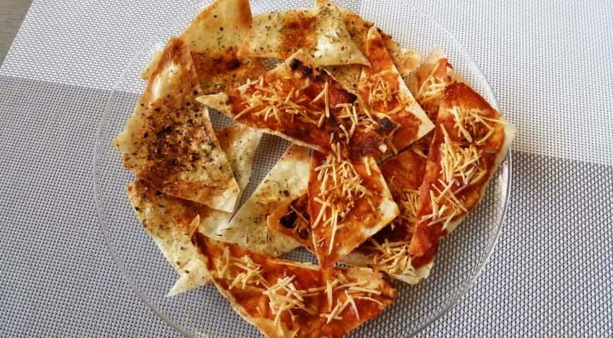 Вкусовые дополнения для чипсов из лаваша могут быть по вашему вкусу — тмин, красный перец, сухой укроп, кориандр, морская соль.