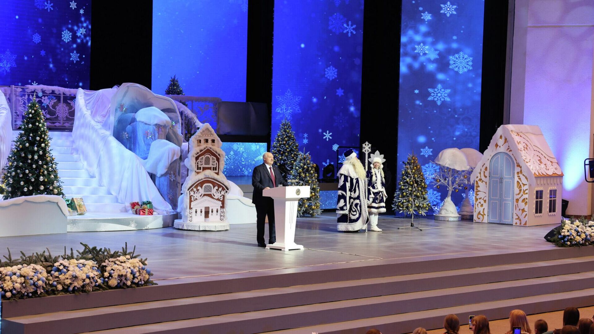 Президент Беларуси Александр Лукашенко принимает участие в благотворительном новогоднем празднике во Дворце Республики, на который приглашено около 2,4 тысячи ребят со всей страны.