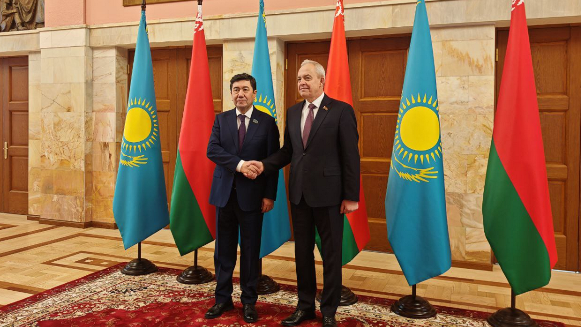 В свою очередь председатель Мажилиса Казахстана поблагодарил за приглашение посетить Беларусь – это его первый визит в страну в таком статусе. По его словам, 10 лет не было официального визита делегации парламента Казахстана в Беларусь.